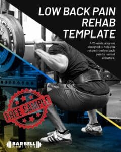 The Low Back template is a 12-week strength and conditioning program designed to aid individuals focused on resistance training (specifically the squat, bench press, overhead press, and deadlift) with finding an entry point to exercise and, over the course of the template, return to normal sporting activities and exercise. Also included is 40-page eBook discussing the ins-and-outs of the program, how-to progress with it, and more!