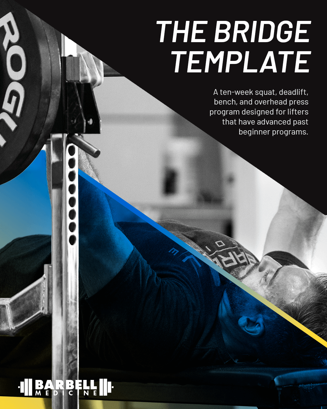 The template allows the user to select exercises based on their preferences, but otherwise includes rep and intensity schemes aimed to increase strength, muscle size, movement proficiency, and work capacity with a bias towards improving the squat, bench press, overhead press, and deadlift. If you’re a brand-new lifter, just coming off the Bridge V1.0, HLM, or Beginner Template or Prescription, then I would recommend this template.