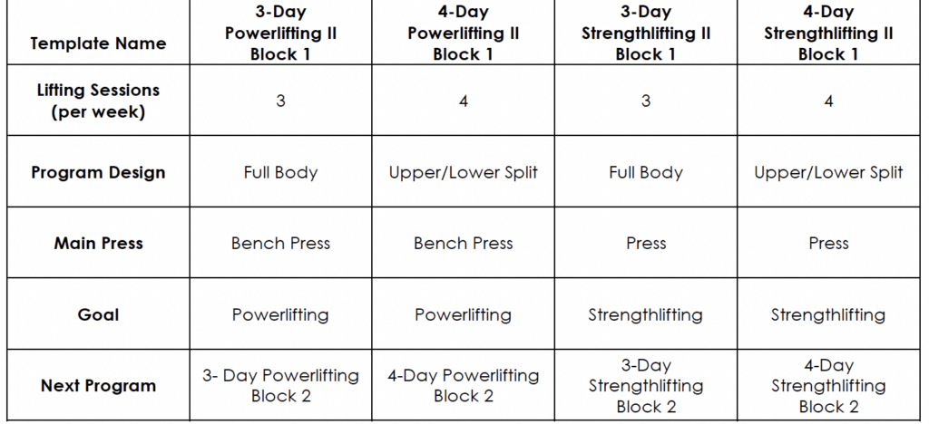 When completing Block 1 of Strength II, we recommend continuing onto Block 2 using the same programming goal, e.g. finishing Powerlifting Block 1 and then moving onto Powerlifting block 2.