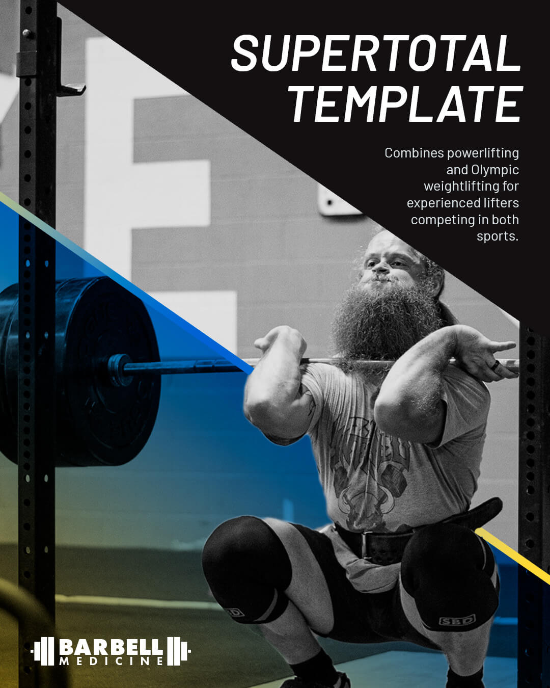 SuperTotal combines powerlifting and Olympic weightlifting into a single program based on work with individuals competing in both powerlifting and Olympic weightlifting. It has a number of unique features: