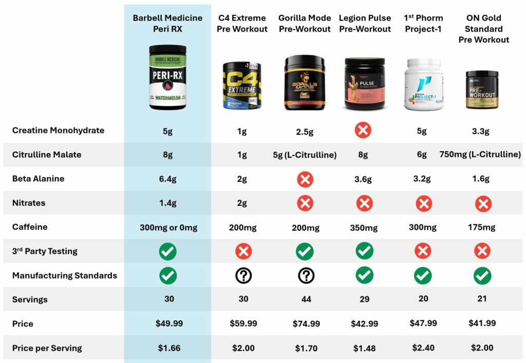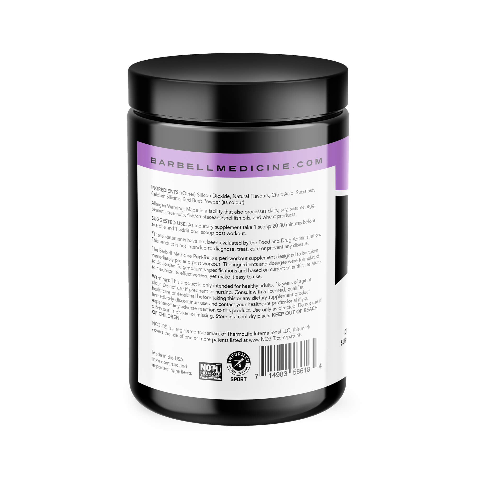 Overall, we’ve changed Peri Rx to be a more traditional pre-workout supplement instead of a “pre-” and “post-” workout supplement. To make this change, we’ve doubled the dose of citrulline malate, creatine, and beta alanine because it’s no longer a twice-a-day supplement. This means the supplement will last twice as long compared to before (now 30-days), as it contains 30 servings and is designed to be taken every day.