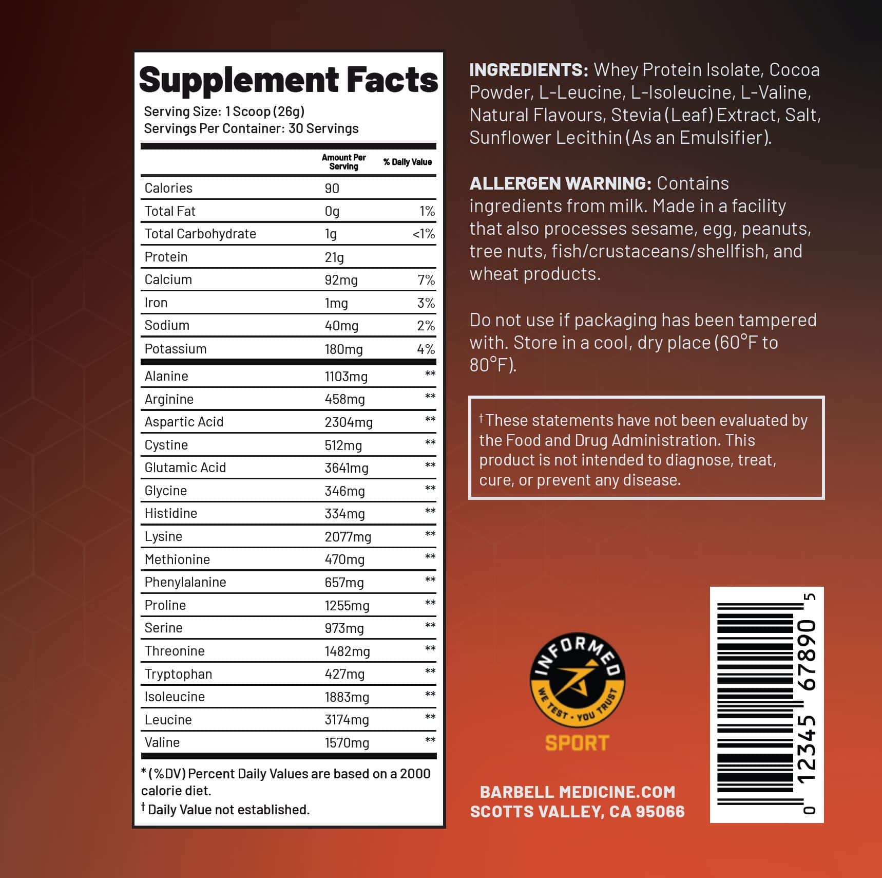 Our Whey-Rx is a whey protein isolate (WPI) supplement that contains 21 grams of protein and 6.5 grams of the muscle-building branched-chain amino acids (BCAAs) leucine, valine, and isoleucine. These are the workhorses of any protein source — without them, it doesn’t matter how many grams of protein a supplement has, because it won’t work optimally without the right amount of BCAAs.