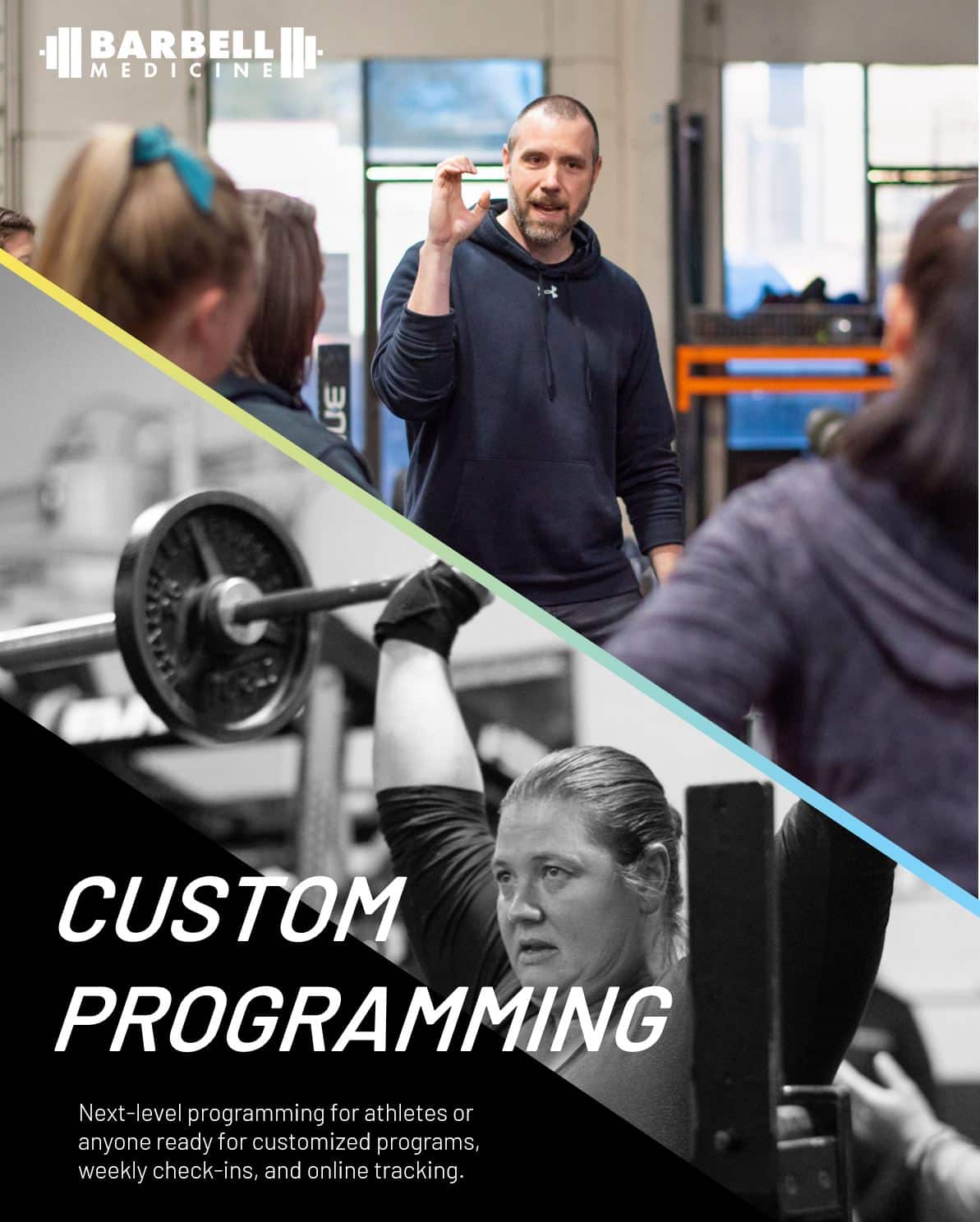 Barbell Medicine provides three different tiers of coaching services. The core offering is a Programming only service that covers all of your fitness and performance needs. There is also a Nutrition only service that focuses on coaching you through diet and weight management. Finally, we have a Combined offering that provides both fitness and nutrition coaching so that you have everything covered. Programming only starts at $233/month, Nutrition only starts at $170/month, and Combined Coaching starts at $340/month. You can see the details here on our Coaching offering page.