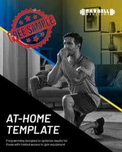 - Minimal Equipment Program – This template is for individuals who have access to few dumbbells, kettlebells, bands, and maybe a pull-up bar, though this isn’t required.